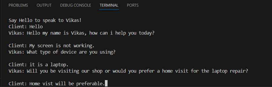 Vikas is a chatbot created specifically for a local shop (M.Tech) to handle customer bookings, time slots, and confirmations. Built with Flask and file-based storage, it processes user input and ensures polite, structured replies — reducing manual effort and boosting customer satisfaction through automation.